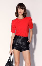 The Lennox Short is a hot pant leather style with long hanging self belt. Guaranteed to add edge to any look, we love it paired back to our oversized leather blazers
