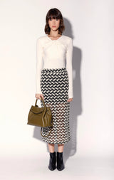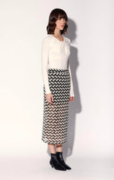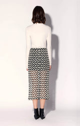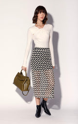 The Nelle Skirt is a cool column shape in our intriguing chevron crochet fabric. This midi length look is even more stylish when worn with the Nanette Top