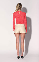 The Ramone Short will be your go to leather short with flattering pleats and diagonal pockets. Whether you dress it up with heels or go more casual with sneakers, in our versatile oyster color it’s a must have for the season.