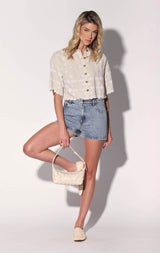 The Santino Short is a updated take on the denim 5 pocket style. With a classic finished hem and chic light wash, it's casual cool at its finest.