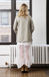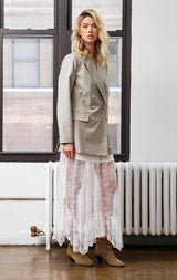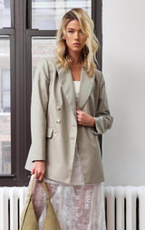 The Charles Blazer is a relaxed longline double breasted blazer with faux horn button accents. Offset this corporate classic shape with feminine lace or make a staple set with the Casper Pant