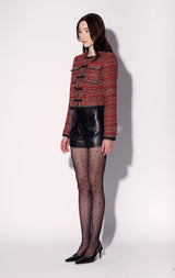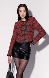 Festive and chic, the Naomi Jacket is a beautiful tweed with charming decorative toggle knot details, chest pockets, fringe and ribbon trim. Wear together with the Nadia Dress for a stand out 2 piece look