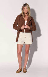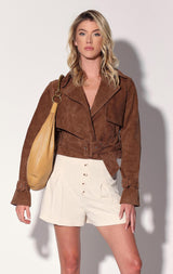 The Rexa Short Trench is a fresh take on the classic must-have. Coming in our luscious suede, this wide collar, belted waist wrap style is the statement jacket you've been waiting for
