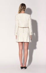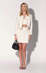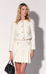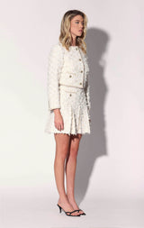 The Roland Jacket is a classic collarless shape in our beautiful tweed with ribbon accents and novelty buttons. Cool with jeans, but it makes a head turning statement worn back to the matching Ramona Skirt