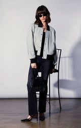 The Emilio Jacket is an effortless oversized bomber in our luscious suede. Coming in an alluring color with contrast cuffs it will be your new go-to.