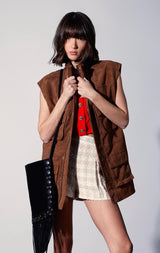Function and fashion collide with the Renata Vest. This longline style comes in our velvety suede and combines cargo pockets with a stylish funnel neck