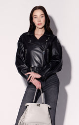 Upgrade your moto look with the Santana Jacket. With a boxy fit and belted waist, it features exaggerated dropped sleeves and exposed zipper detail