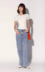 The Jennifer Top is the perfect fitted baby tee with shirred sleeve detail. Coming in an array of colors, it will be your new go-to