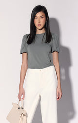 The Shelly Top is the sweet and chic update to the everyday tee. With an accent of volume in its balloon style sleeves and a fitted bodice, it goes with every ensemble.