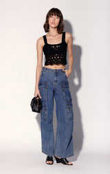 The Beverly Tank Top is an effortless and flirty top in our fabulous crochet fabric. Wear it with a leather mini for date night perfection