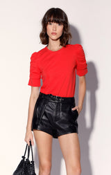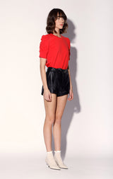 The Lennox Short is a hot pant leather style with long hanging self belt. Guaranteed to add edge to any look, we love it paired back to our oversized leather blazers