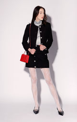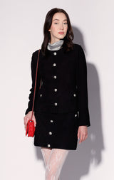 The Lolita Jacket brings together our chic soft suede in a classy feminine silhouette. With engraved buttons and flap pockets, its even more fabulous with the matching Libby Skirt