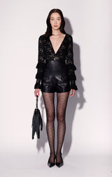 The Paloma Top is as romantic as it is sultry in our beautiful lace fabric. Showcasing a plunge neckline and ruffled sleeves, you'll want to wear it on repeat this party season