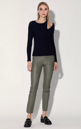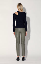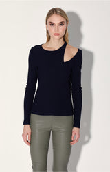 A rib knit crew neck with a one sided shoulder slit, the Kailee Top adds a little attitude to your look