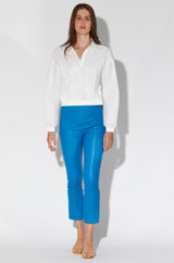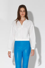 Great to pair back to jeans or our colored leggings, the Trinette Top features a V neck collar and asymmetric shirring
