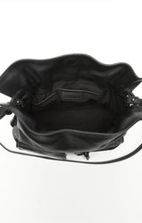 Magnet top closure; Soft tubular knotted details with metal accents; Interior slip pockets with debossed logo; Fully lined; Comes with dust bag
