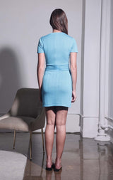 Be date night ready in a flash with the London Dress. This fitted knit mini is elevated with welt pockets details and gold button accents