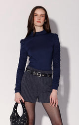 Coming in a range of colors, the Chaya Top is a slim fit mock neck top, with stylish shirred sleeves. This closet staple is great for layering or on its own