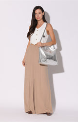 Front bottom logo in lacquered metal; Open top with magnetic closure; Interior leashed removable zip pouch bag; Slip pocket with debossed logo; Interior cell phone pockets; Fully lined; Comes with dust bag