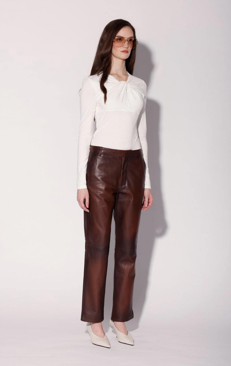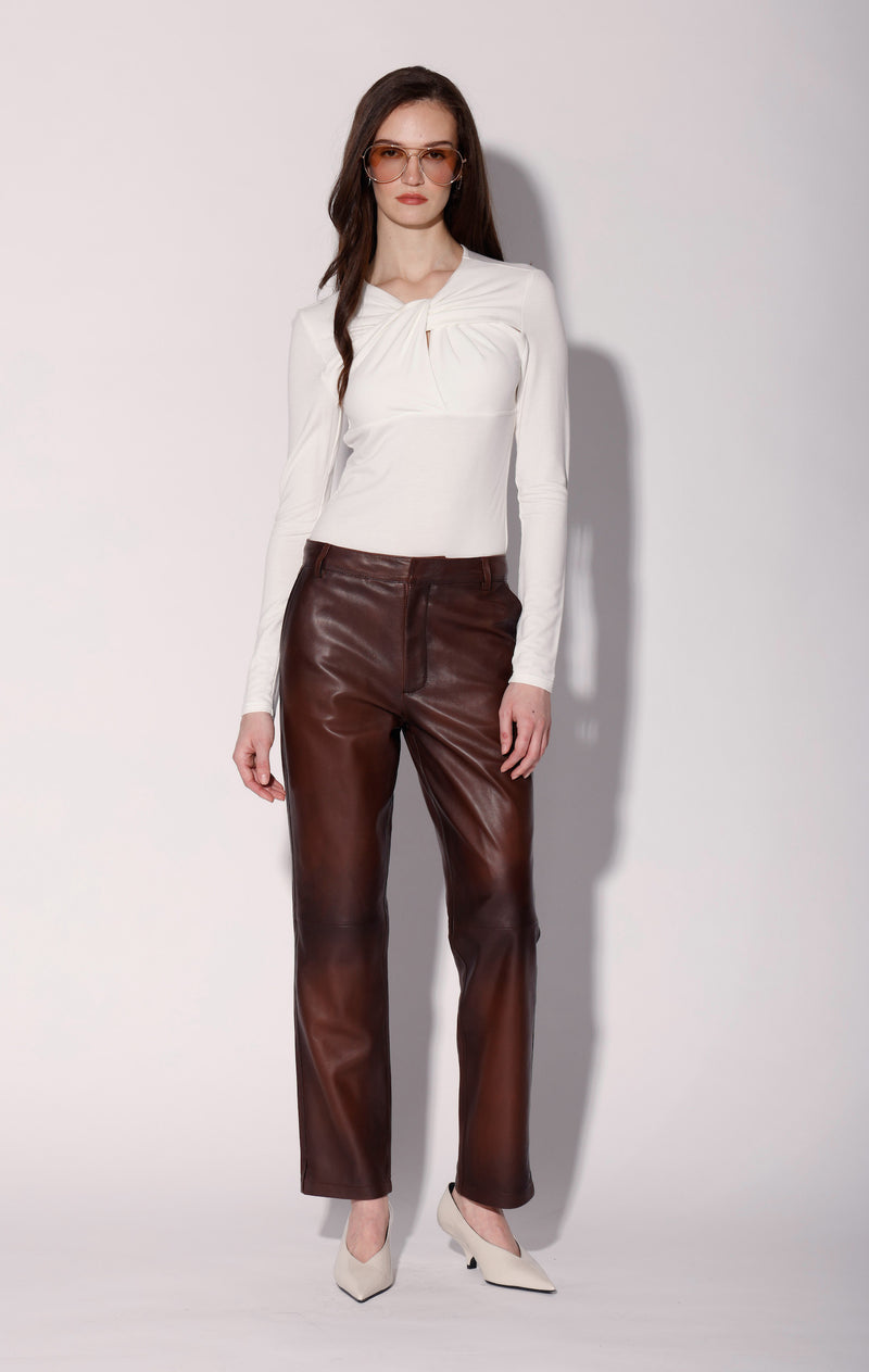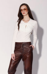 The Corinne Top features a sultry twist cut out neck detail in our drapey knit fabric. Dress it up with one of our mini skirts, or go more casual with jeans