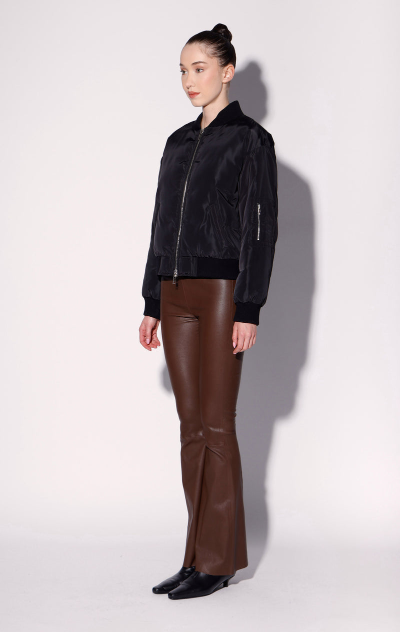 Add classic cool to your closet with the Elias Jacket. This bomber puffer style includes a sleeve zip patch pocket and exposed center front double ended zipper closure