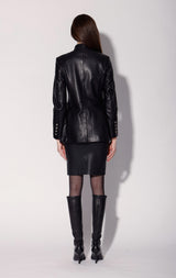 With dome snap buttons and sleek silhouette, the Isabella is a sophisticated upgrade to the leather jacket. Classy and chic, this stand collar look is perfect to go from desk to dinner