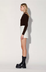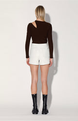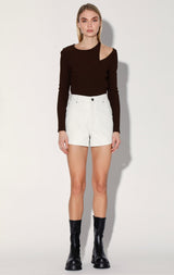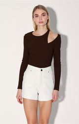 A rib knit crew neck with a one sided shoulder slit, the Kailee Top adds a little attitude to your look