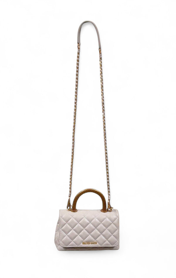 The Leila Snake Mini Top Handle is elegant and refined, adding a luxe touch to any look. With a removable strap and quilted leather finish, it's your perfect day-to-night companion.