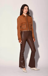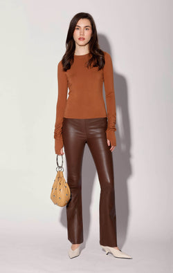 With a wide waistband and flared leg shape, the Lexie Pant is the must have style of the season. Made with our genuine stretch leather, the fit and feel are fabulous