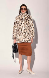 The Priscilla Coat is perfect for a night out. Coming in an eye catching animal print faux fur, this mock neck style is great over a dress or to elevate your fave jeans